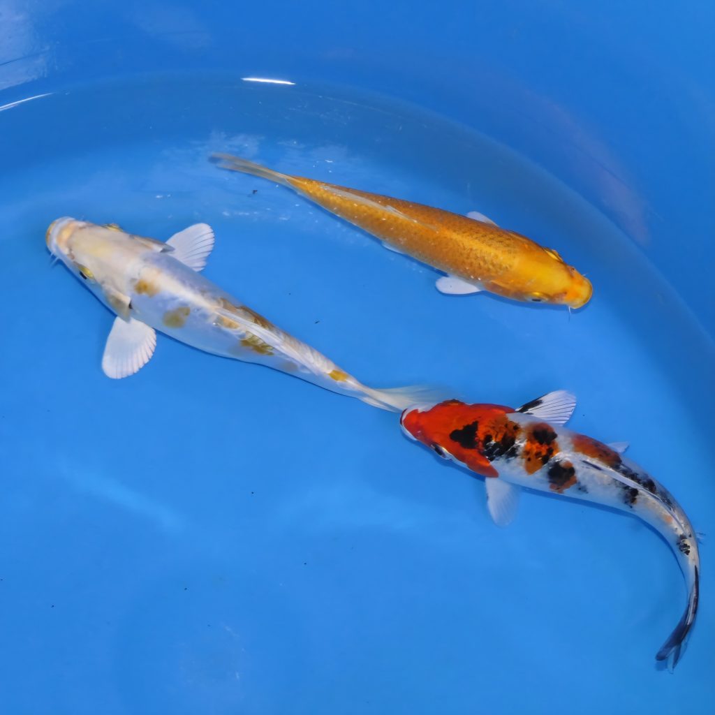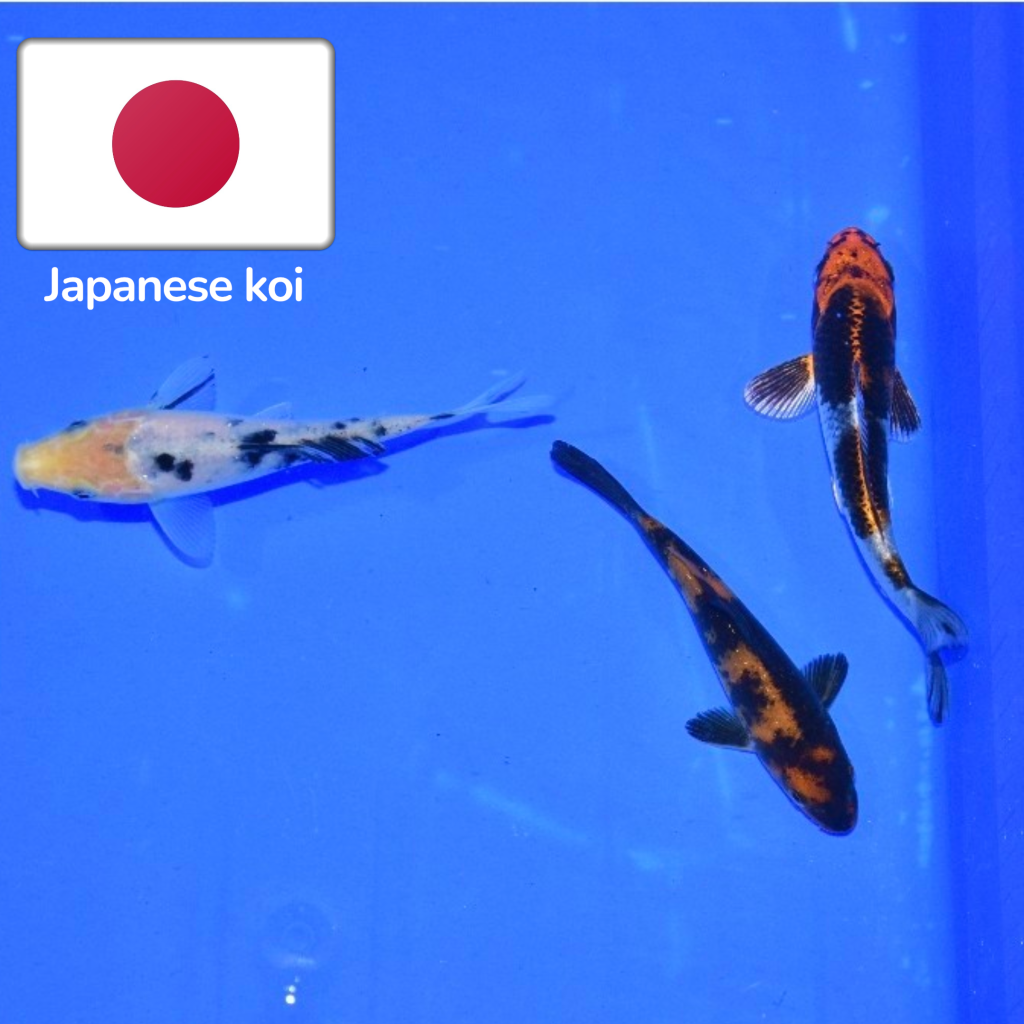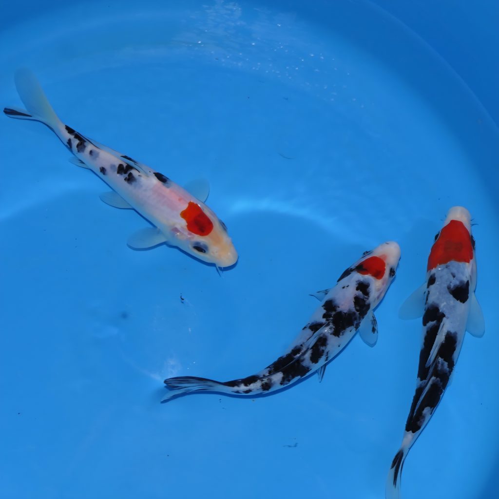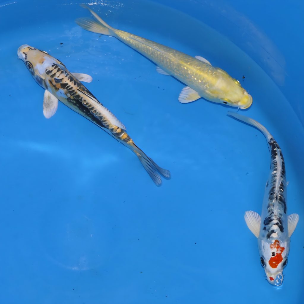 We have a large selection of Koi Carp for sale including popular Koi varieties such as Sanke Koi, Showa Koi, Chagoi Koi, Hariwake Koi, and more. Choose from a wide range of different scale patterns including Doitsu, Ginrin etc.