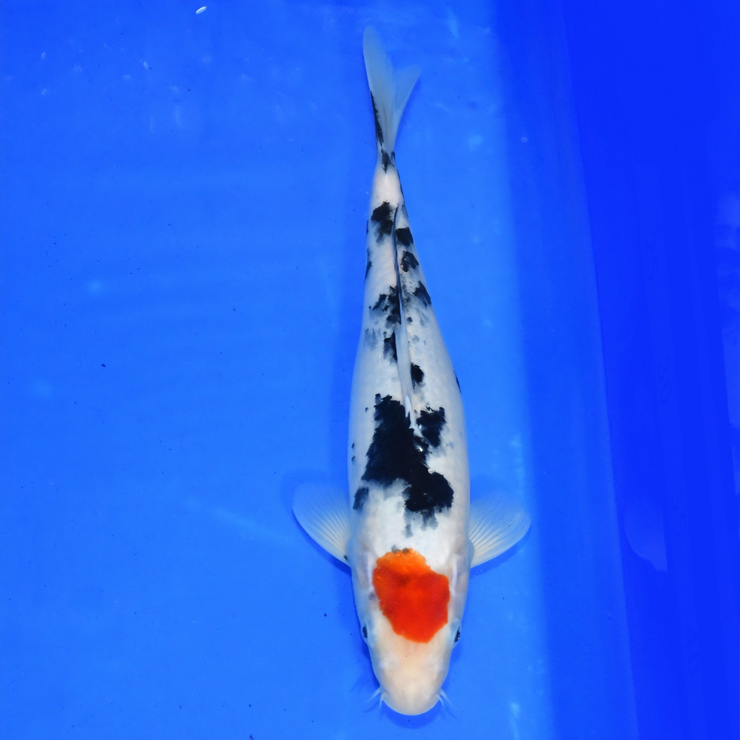 It is said that a great Sanke pattern begins with a high quality Kohaku pattern. A Sanke koi has a solid white base overlaid with red and black. A good Sanke is a must for any Koi pond. Variations of Sanke koi include Doitsu Sanke koi, Tancho Sanke koi, Gin rin Sanke koi and Maruten koi.