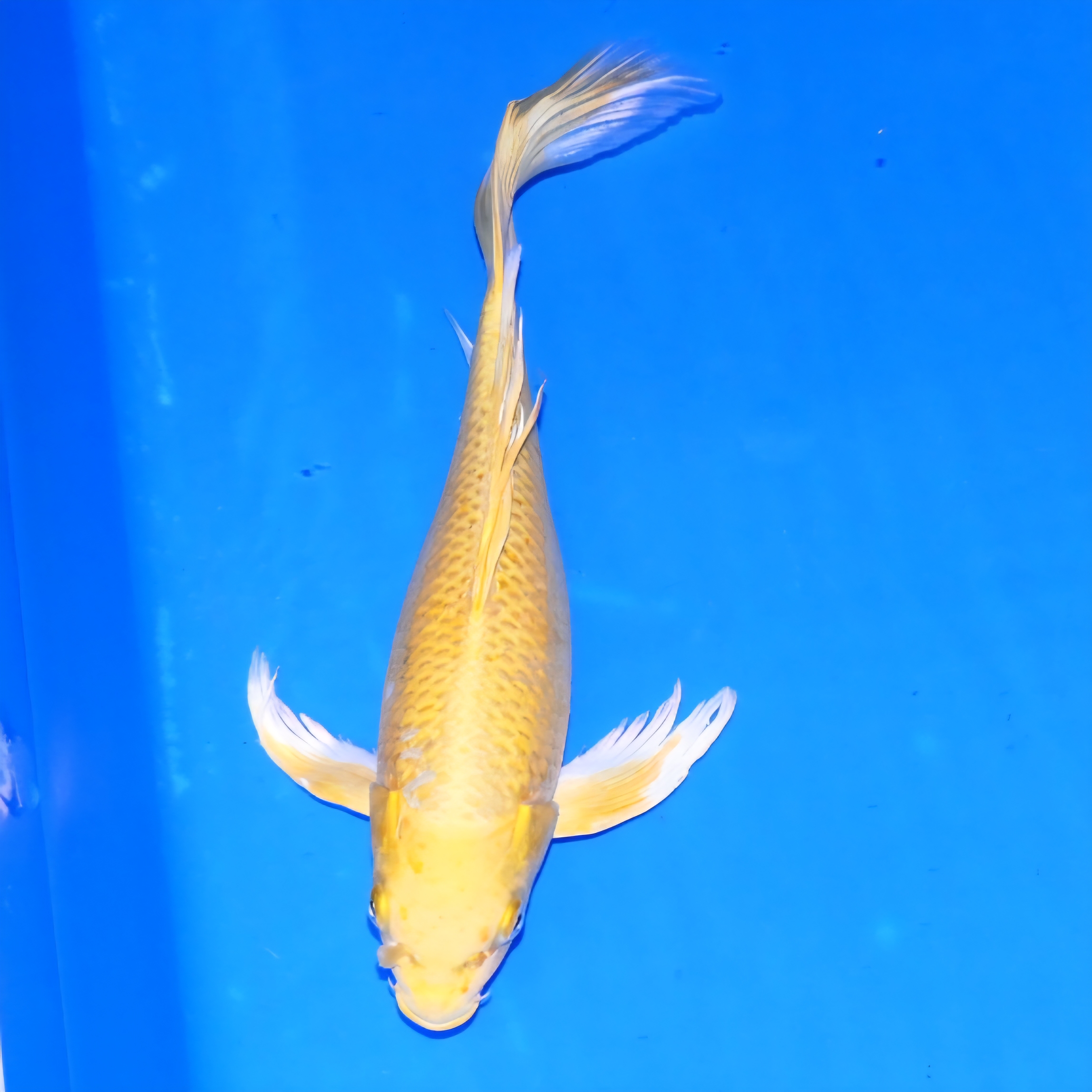 Often referred to as Yellow Ogon, Yamabuki is a solid metallic Yellow Koi Carp. A clean, clear yellow on the head and body is a desirable quality of a Yamabuki. Additionally variations include Ginrin and Doitsu.