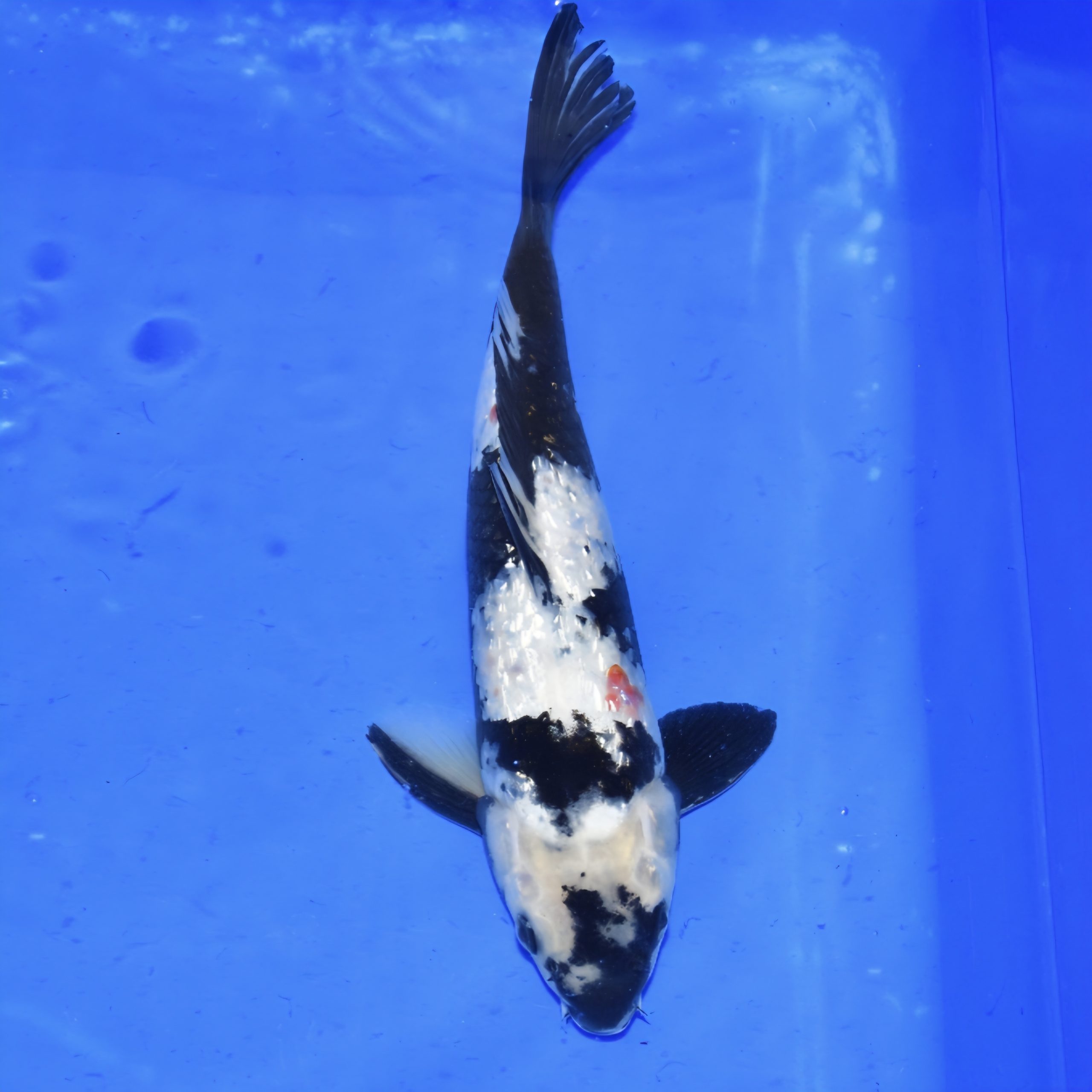 A Showa is a koi that display white and red/orange patterns over top of a black base color.In Showa, the black patterns will wrap all the way around the body, instead of appearing only on the top half of the body. Also, Showa will have black patterns on the head, and Sanke will not.Variations of Showa include Tancho Showa, Maruten Showa, Gin Rin Showa, Doitsu Showa and Kin Showa