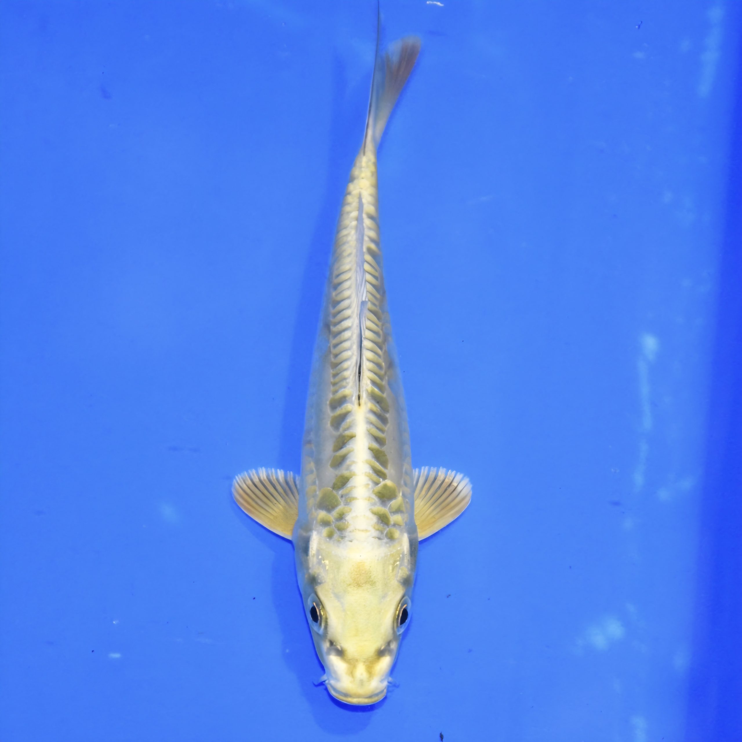 Often referred to as Yellow Ogon, Yamabuki is a solid metallic Yellow Koi Carp. A clean, clear yellow on the head and body is a desirable quality of a Yamabuki.