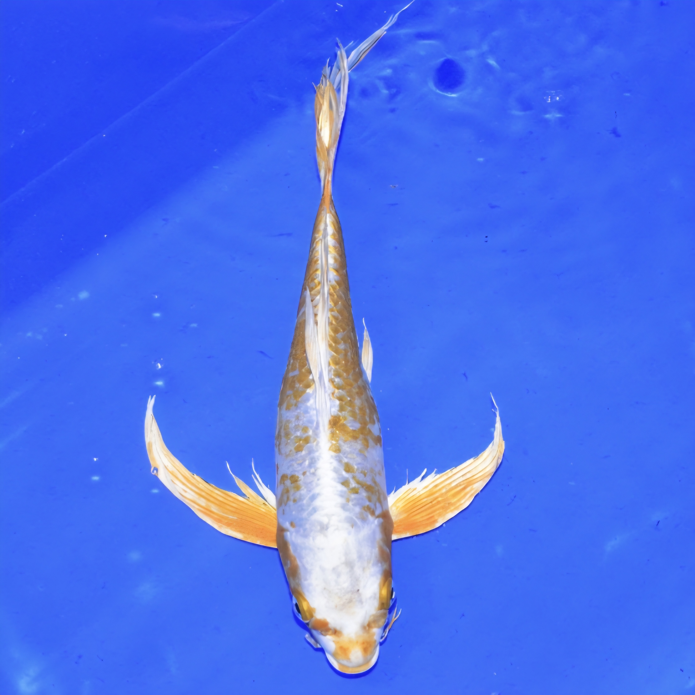 Hariwake have a solid metallic white base with patterns of yellow or orange. The white is different to that of a Kohaku as it is much stronger and brighter.